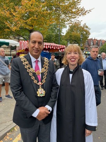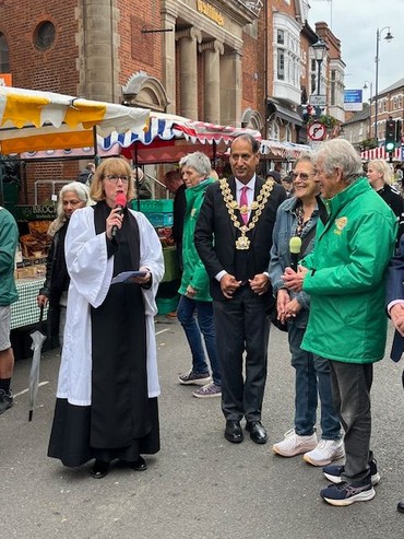 On 27th September, the Moseley Farmers' Market celebrated its 25th Anniversary! The Lord Mayor of Birmingham, Councillor Zafar Iqbal; the Deputy Lieutenant, Clive Reeves and Revd Ange helped mark the occasion. Here are some photos from their walk around the market with David Isgrove, Izzy Knowles and Radley Russell.