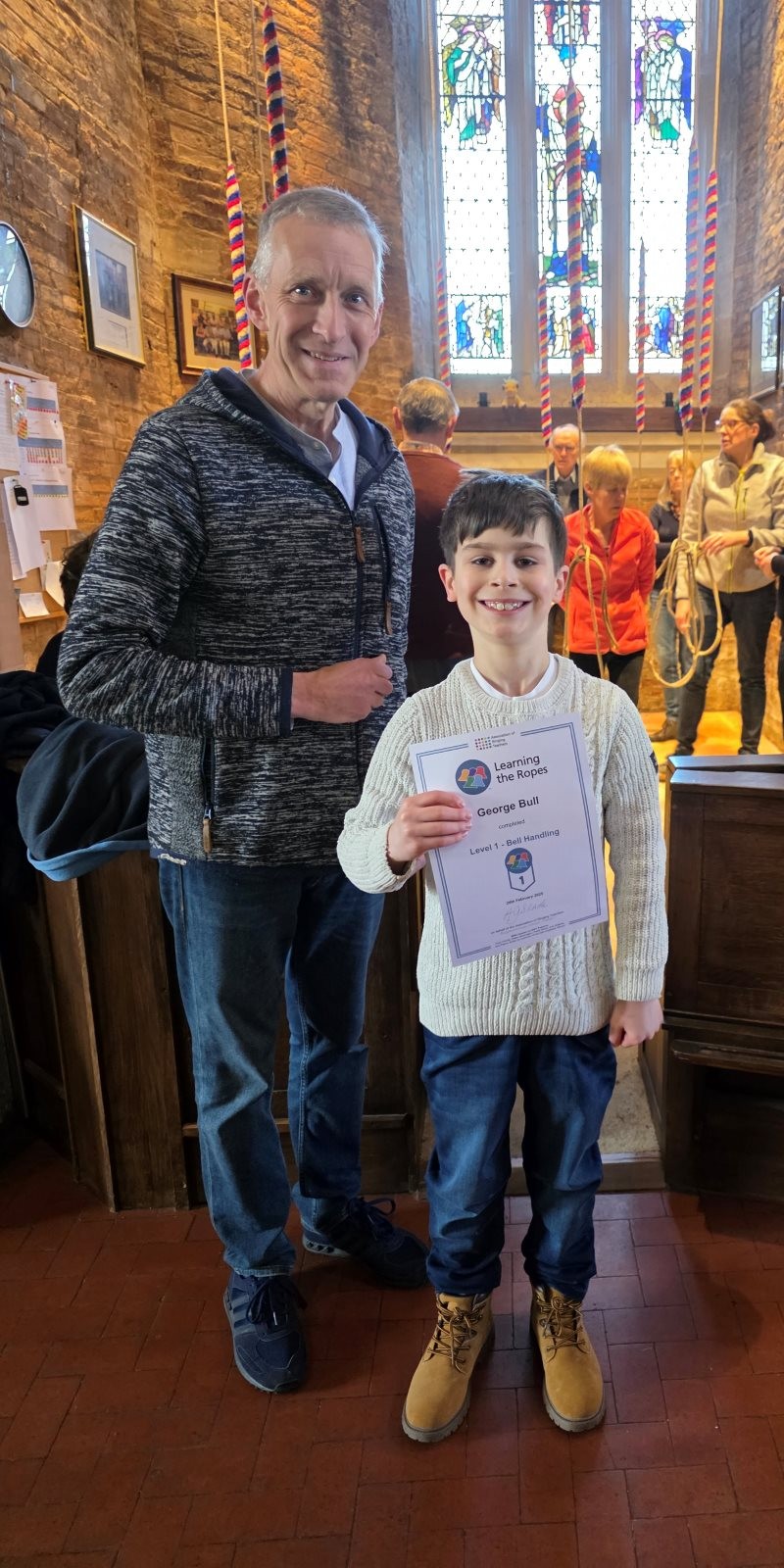 Congratulations to George who has successfully passed Level 1 of his bell ringing course with the Association of Ringing Teachers, meaning that he can now ring without assistance. He is one of the youngest people in the UK ever to do so, and he scored 15/16 compared to the pass mark of 11/16.